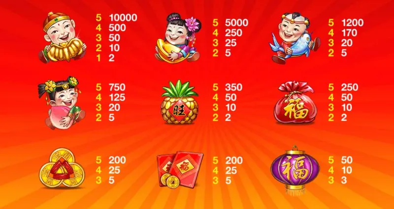 在《招财童子》中,幸运男孩将带着金条、红包雨和幸运光环出现在转轴上!当他出现时,你的奖励将立即激活:免费旋转开始,每条线的赔率飙升,奖金实时翻倍!每一次旋转都如同幸运男孩为你播撒财富的种子,将平凡的联系变成好运的连锁,将小赢变成大赢,将好运变成非凡!